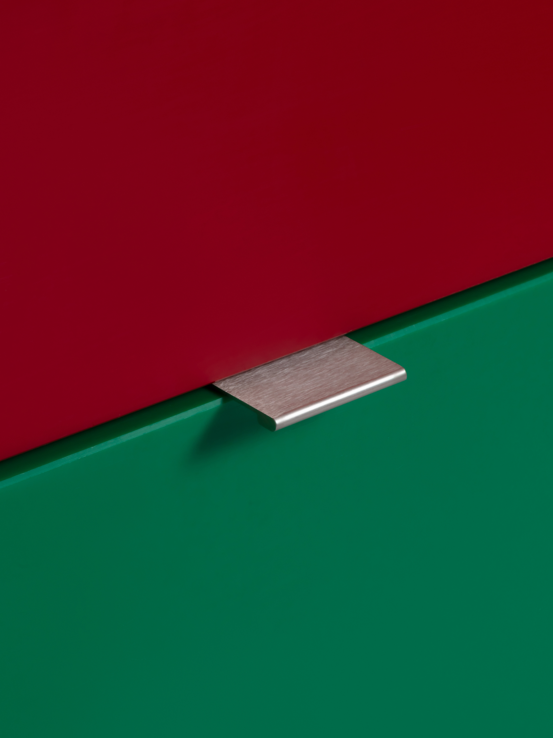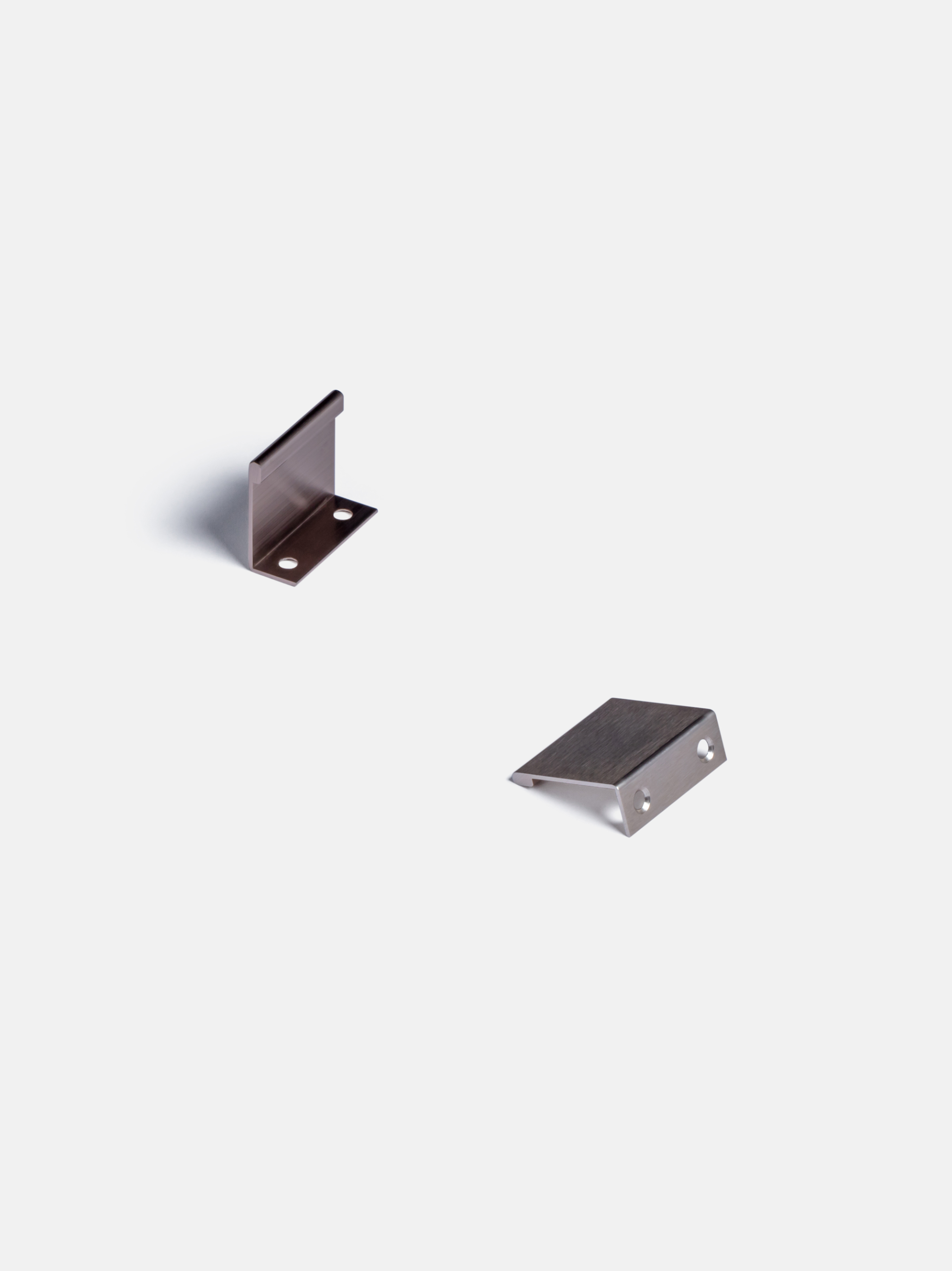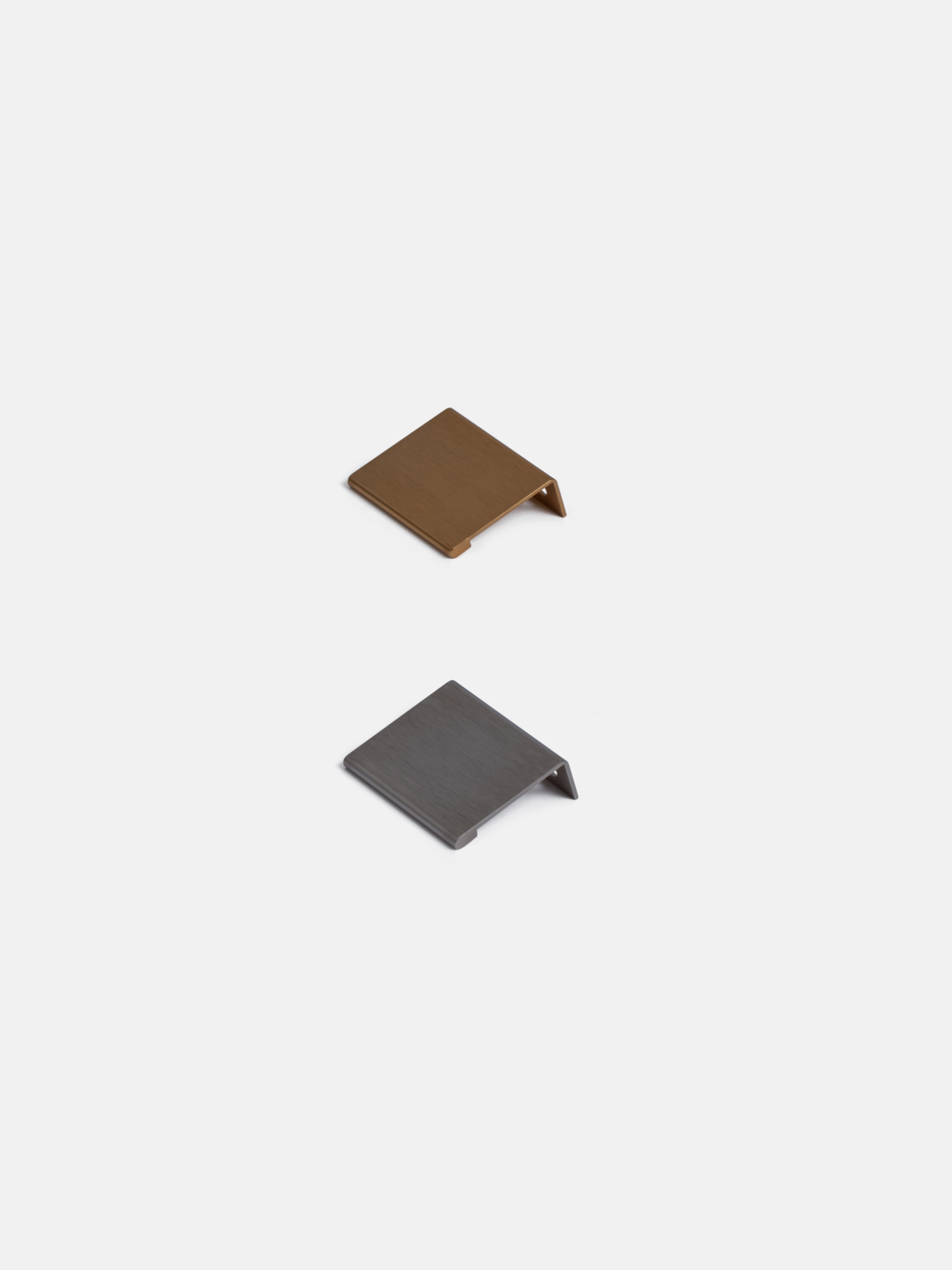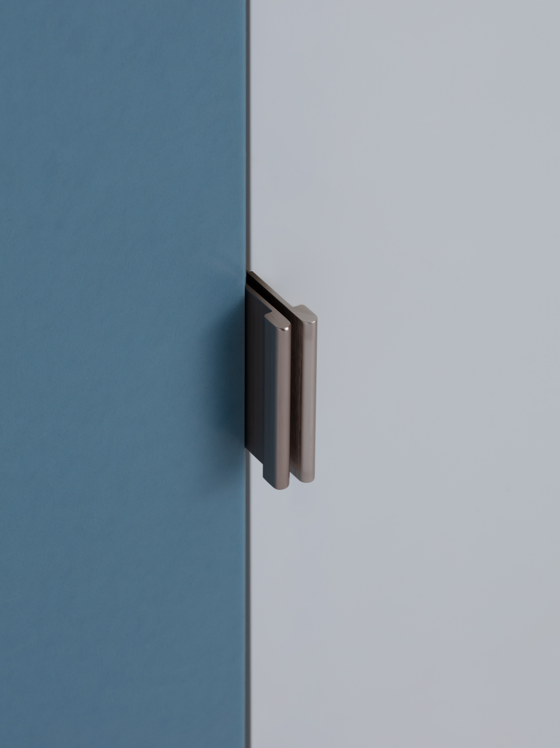 MATCH har en grebsfri push-to-open løsning. Valgfrie greb fås i anodiseret aluminium – enten satin-guld eller aluminiumsfinish – og måler 1 31/32" / 50 mm i længden.