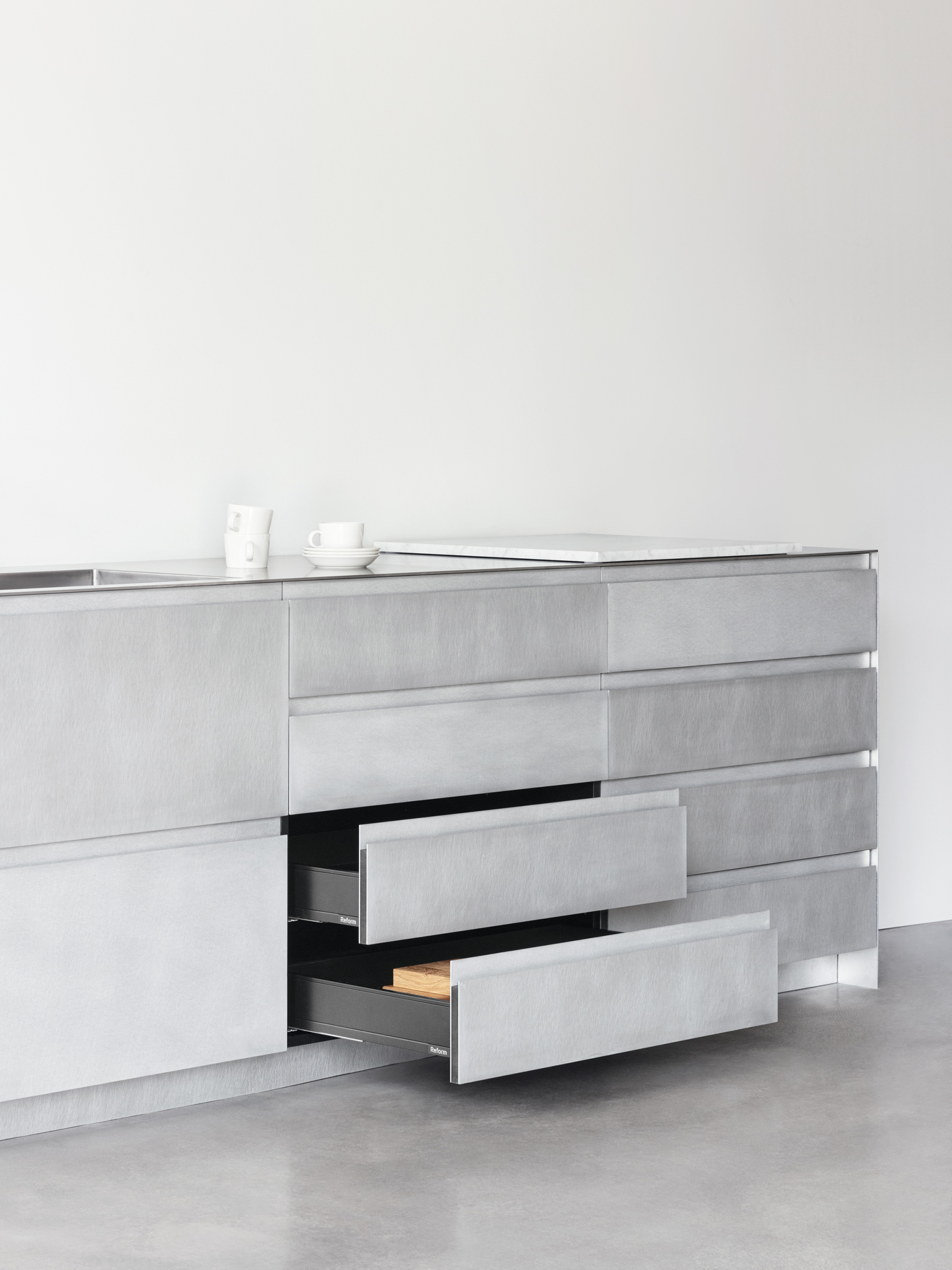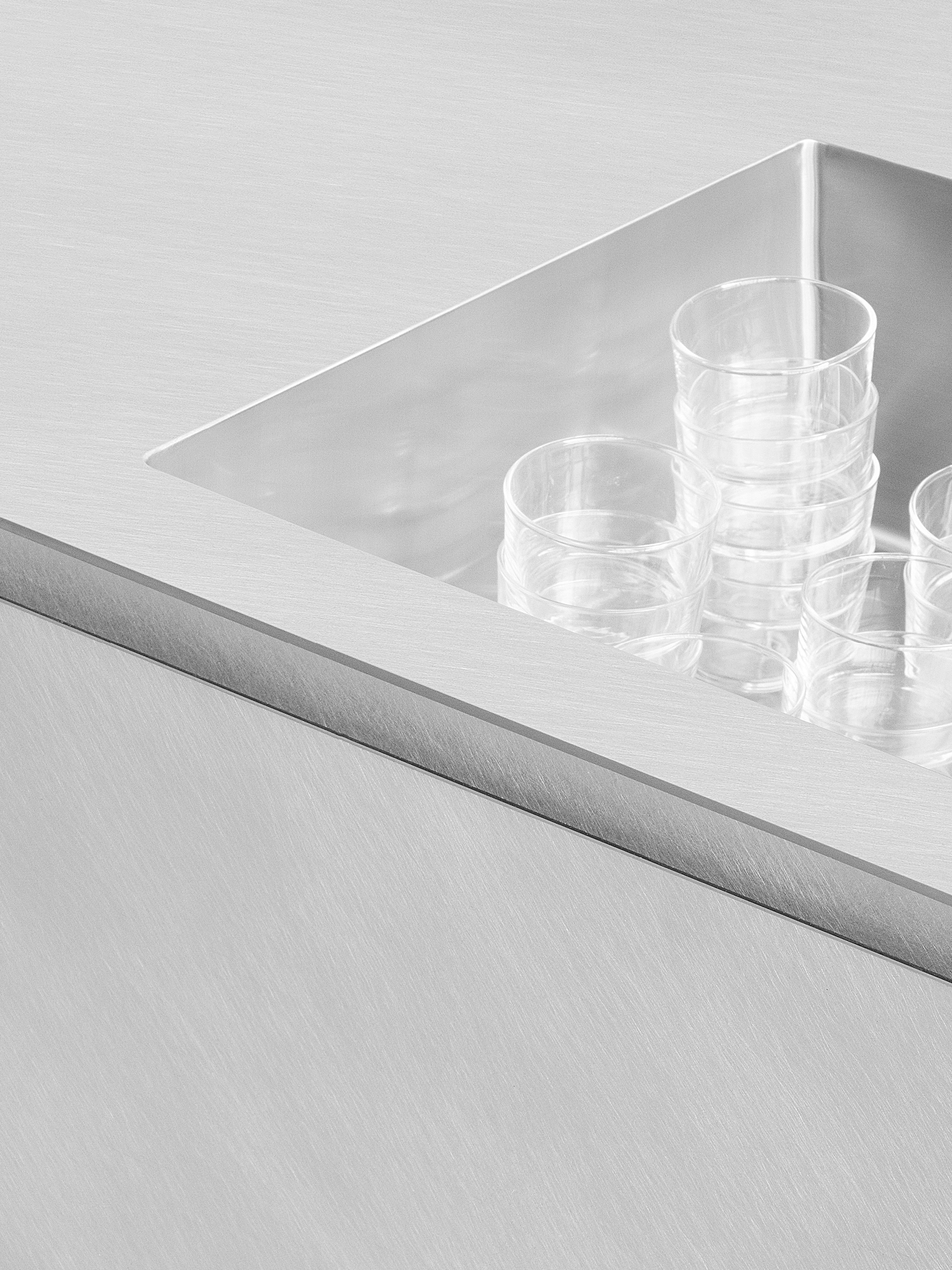 PLATE er formgivet med et råt og ærligt forhold til materialer og afspejler David Thulstrups kompromisløse designfilosofi. Håndbørstet aluminium og matte overflader skaber en holdbar, taktil tilstedeværelse. Med sin enkle opbygning og arkitektoniske klarhed fremstår kollektionen både moderne og tidløs – raffineret i formen og forfriskende umiddelbar.