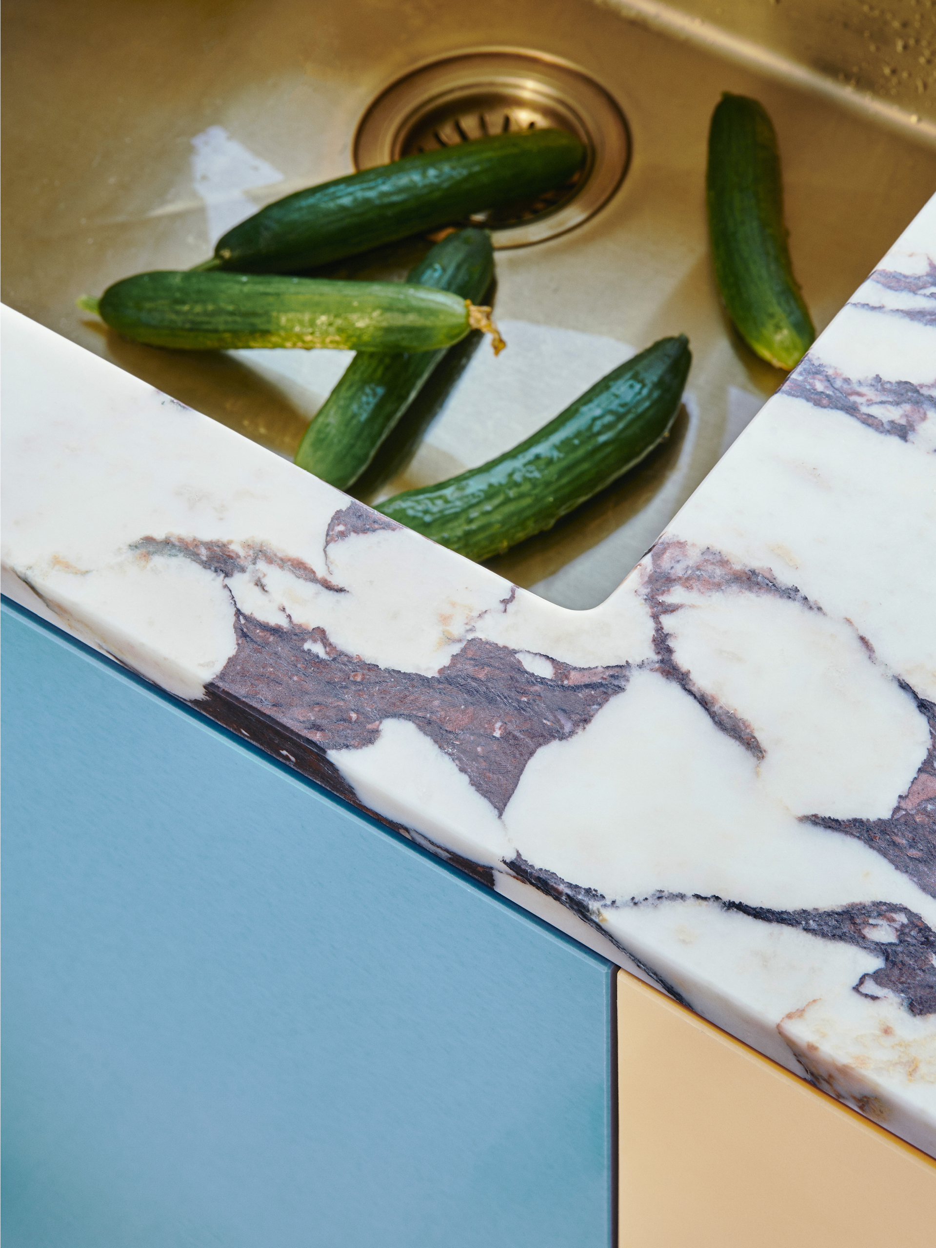 Den anerkendte designduo Muller van Severen har skabt et design, der er lige så robust, som det er bemærkelsesværdigt. MATCH forener utraditionelle elementer med klassiske, legende detaljer som aluminiumsgreb og dybgrøn marmor – et design, der både udfordrer konventioner og fanger øjet.