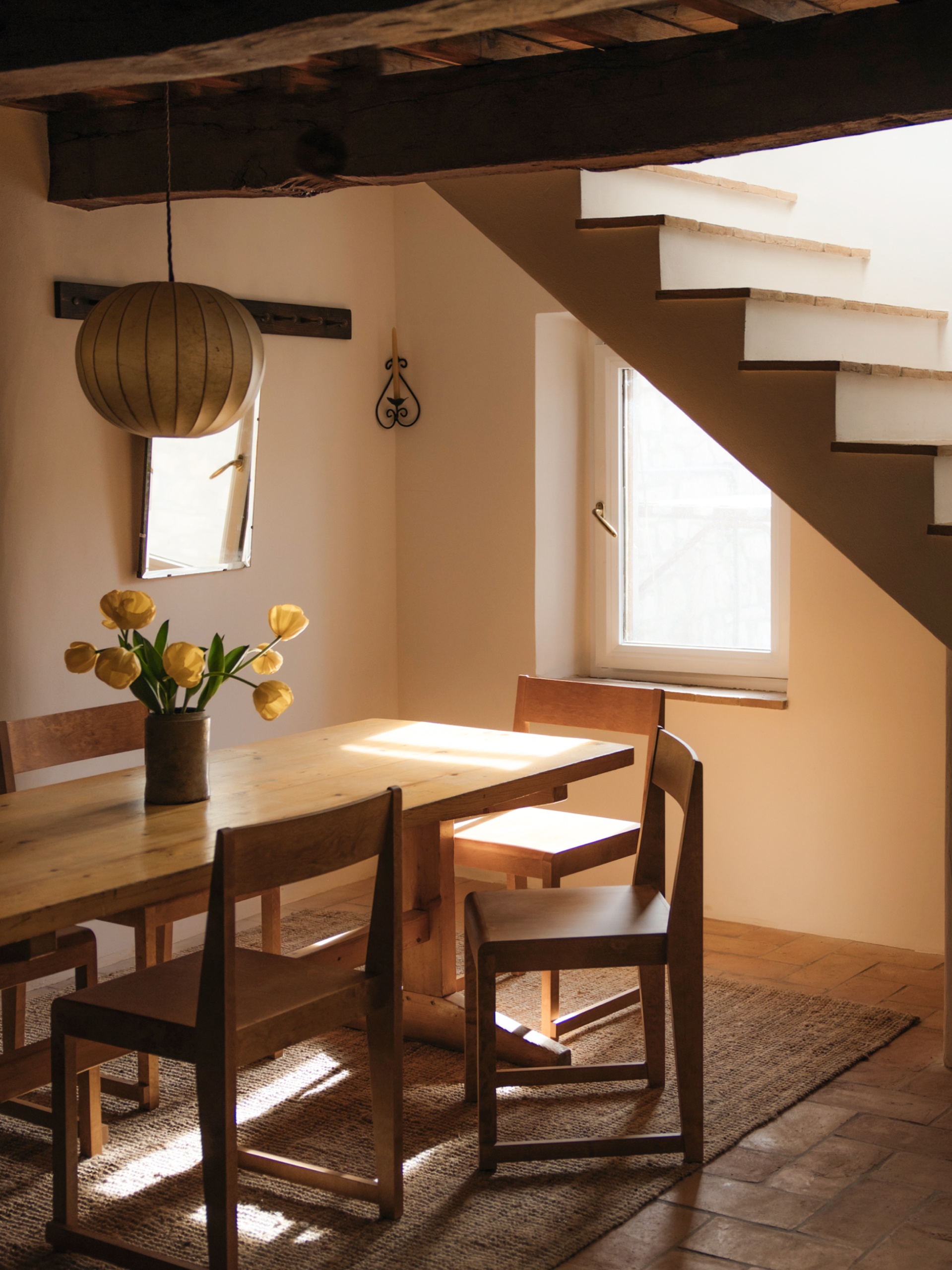Sam lives in rural Umbria, Italy, a quiet contrast to his frequent travels. Often home for only a day or two between jobs, he cherishes the countryside as an antidote to his hectic schedule. Having grown up in New York City, he’s used to moving quickly, so cooking meals for himself helps him slow down and appreciate the moment. “I’m not someone who naturally slows down,” he says, “so I have to force myself into these rituals.” Each morning, he makes breakfast, reads, or plays chess, a grounding ritual before the day begins. These routines have also changed how he photographs at home, as he’s drawn to capturing the same views and corners, noticing how light and mood transform them. “That’s something I love about photography: the quiet act of photographing the same subject again and again, and noticing how light, mood, or time of day change everything.” When home for longer, he invites friends to cook and share meals, using local and homegrown produce.