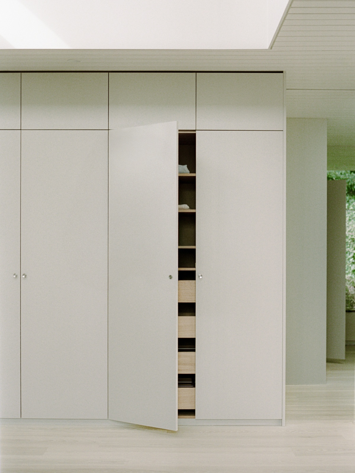 If you have the space for a walk-in closet, the next step is figuring out how to organize it. Questions to ask yourself include: What will you use the closet for? Do you want space to sit in your closet? Do you want an area for seasonal items that can be rotated throughout the year? Reform’s cabinetry modules, available in a wide variety of widths and heights, allow you to create the perfect walk-in closet space, considering storage accessories and organizers such as clothing rods, shelving, interior lighting, and dividers. A large wardrobe for hanging clothes, deep drawers, and even a storage bench to sit on elevate a walk-in closet space. A built-in dresser in the closet ensures an organized area where you can see your entire wardrobe at once.