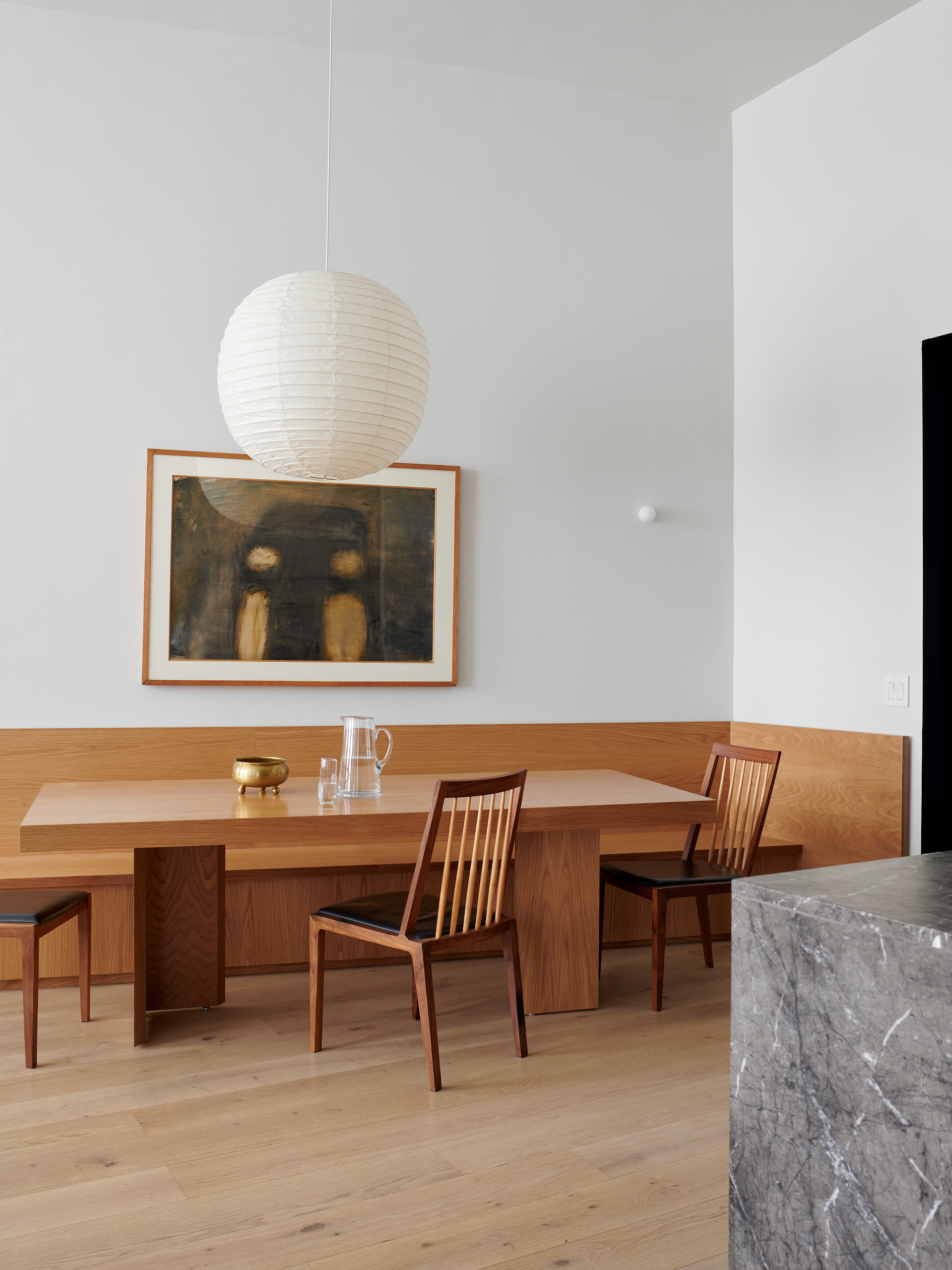 Eine Küche ist nicht nur der Ort für Essen in jedem Zuhause, sondern auch ein zentraler Versammlungspunkt. Cecilie Manz hat eine Küche entworfen, die auf einfachen Prinzipien basiert, und einen Mittelweg zwischen Funktionalität und Ambiente findet. Die Arbeitsplatte aus Edelstahl ist nicht nur praktisch, sondern verleiht der Küche auch einen ganzheitlichen Ausdruck. Mit ihren warmen Farben schaffen die Fronten – ob aus goldener Oregon-Pinie, in einem warmen Grauton oder in weiß lackiert – eine behagliche Atmosphäre in der Küche. Die Holzmaserung verläuft im 45° Winkel auf der Front. Der Griff wird als Dreieck aus der Ecke der Front mit einer Einkerbung herausgefräst; auch hier verläuft die Maserung im 45° Winkel, sodass der Griff auf den ersten Blick nicht sichtbar ist. Durch die schlichten Details und beständigen Materialien ergibt sich eine außergewöhnliche Ästhetik mit einem modernen Look.