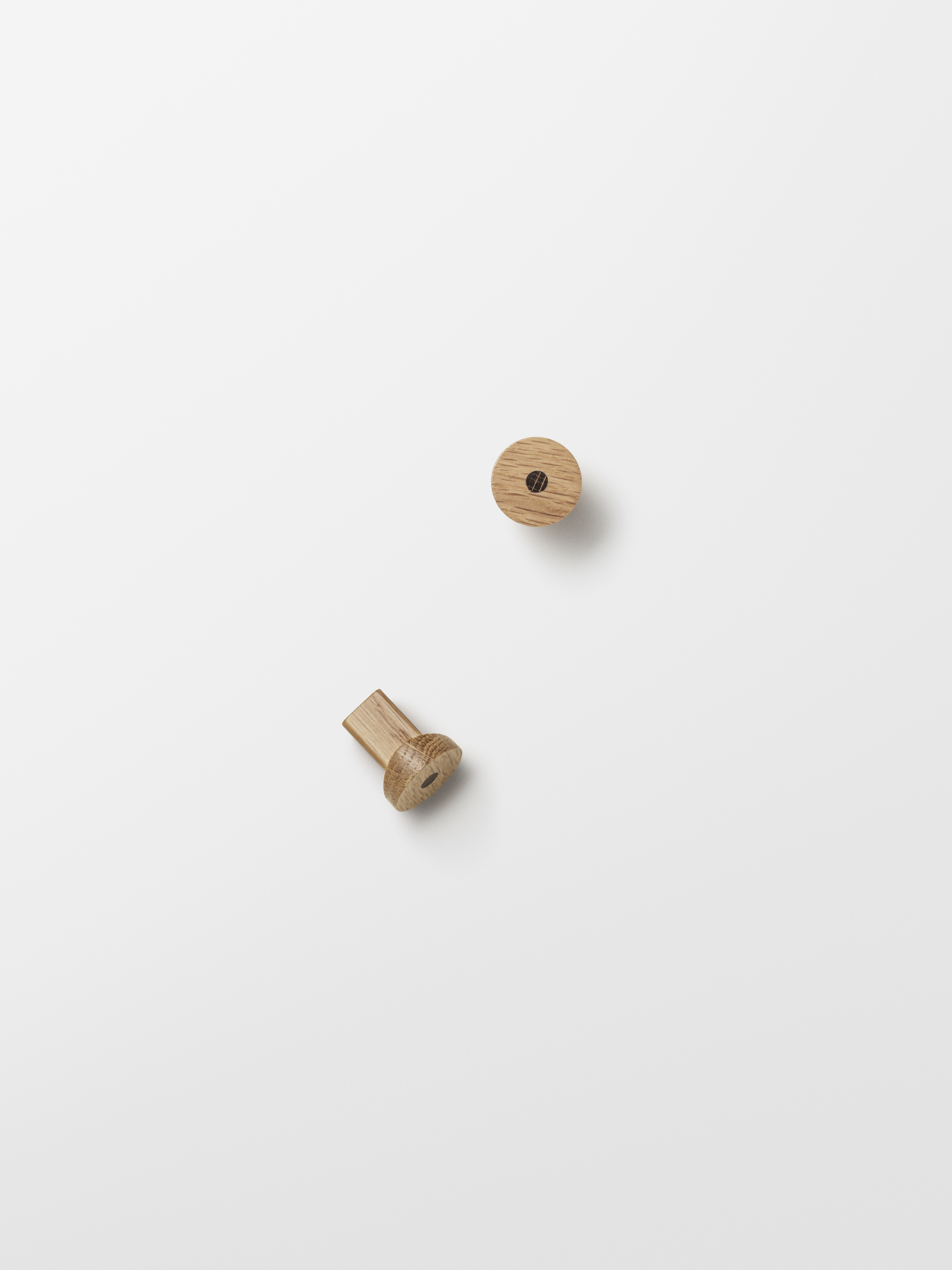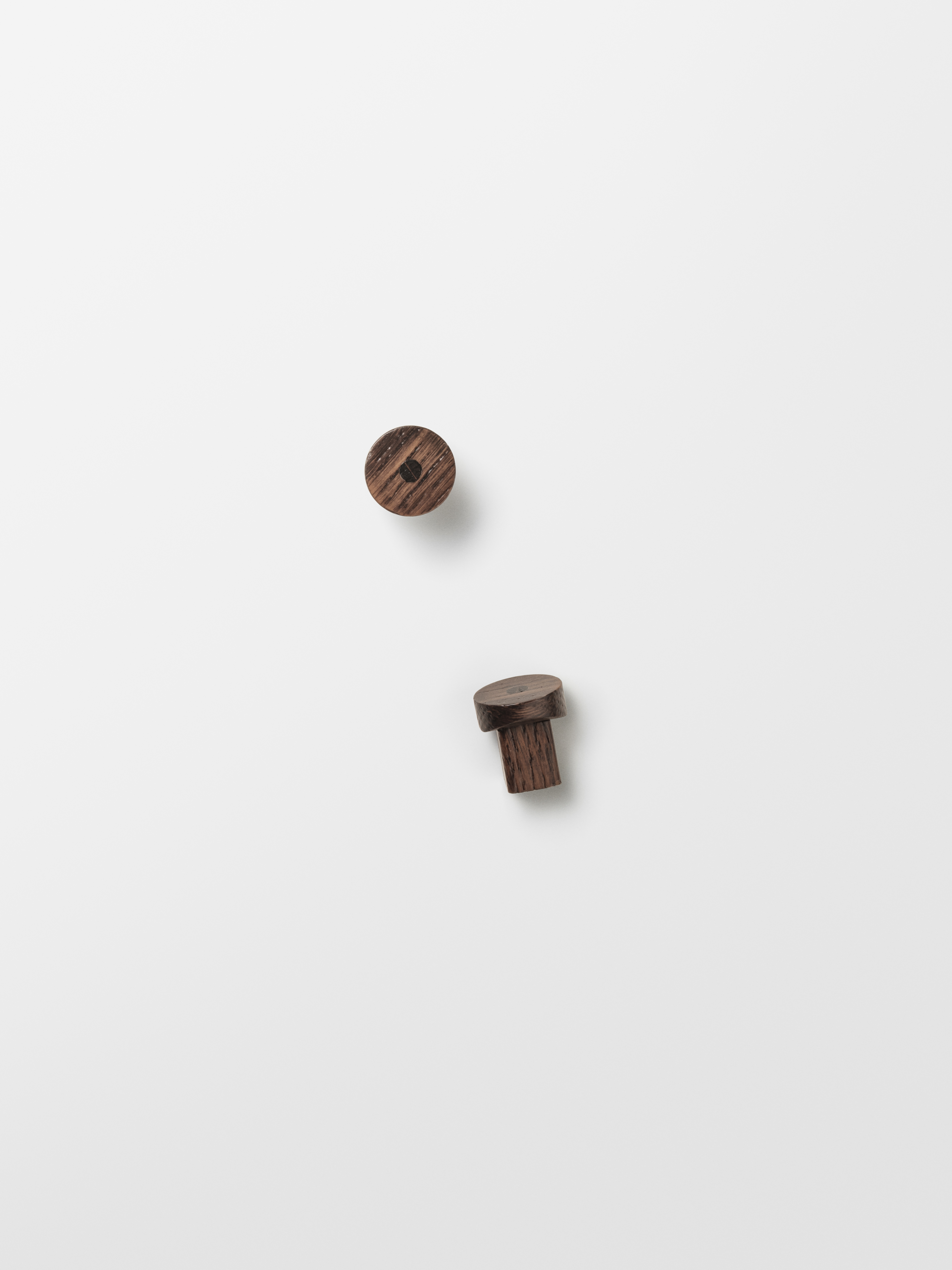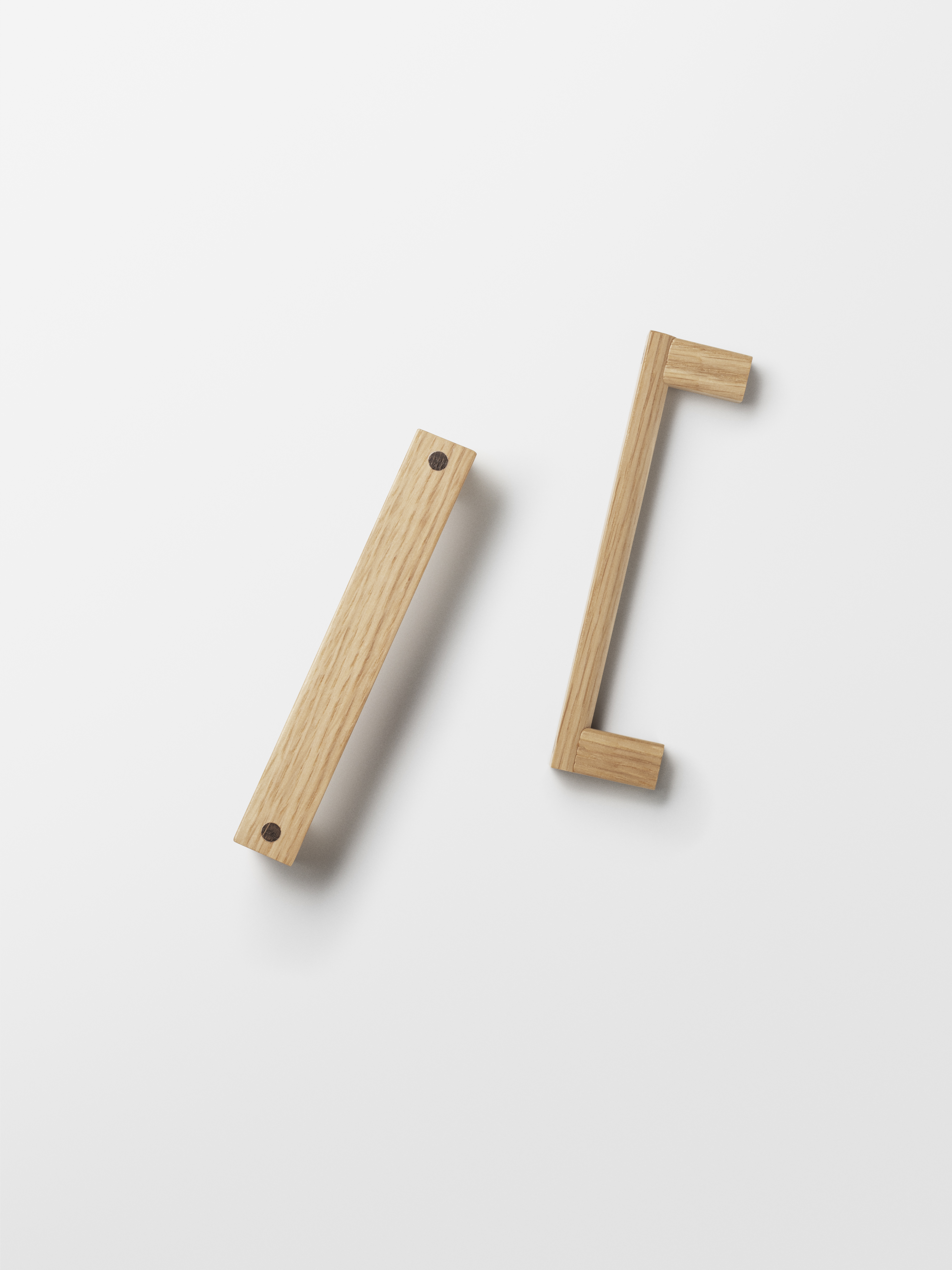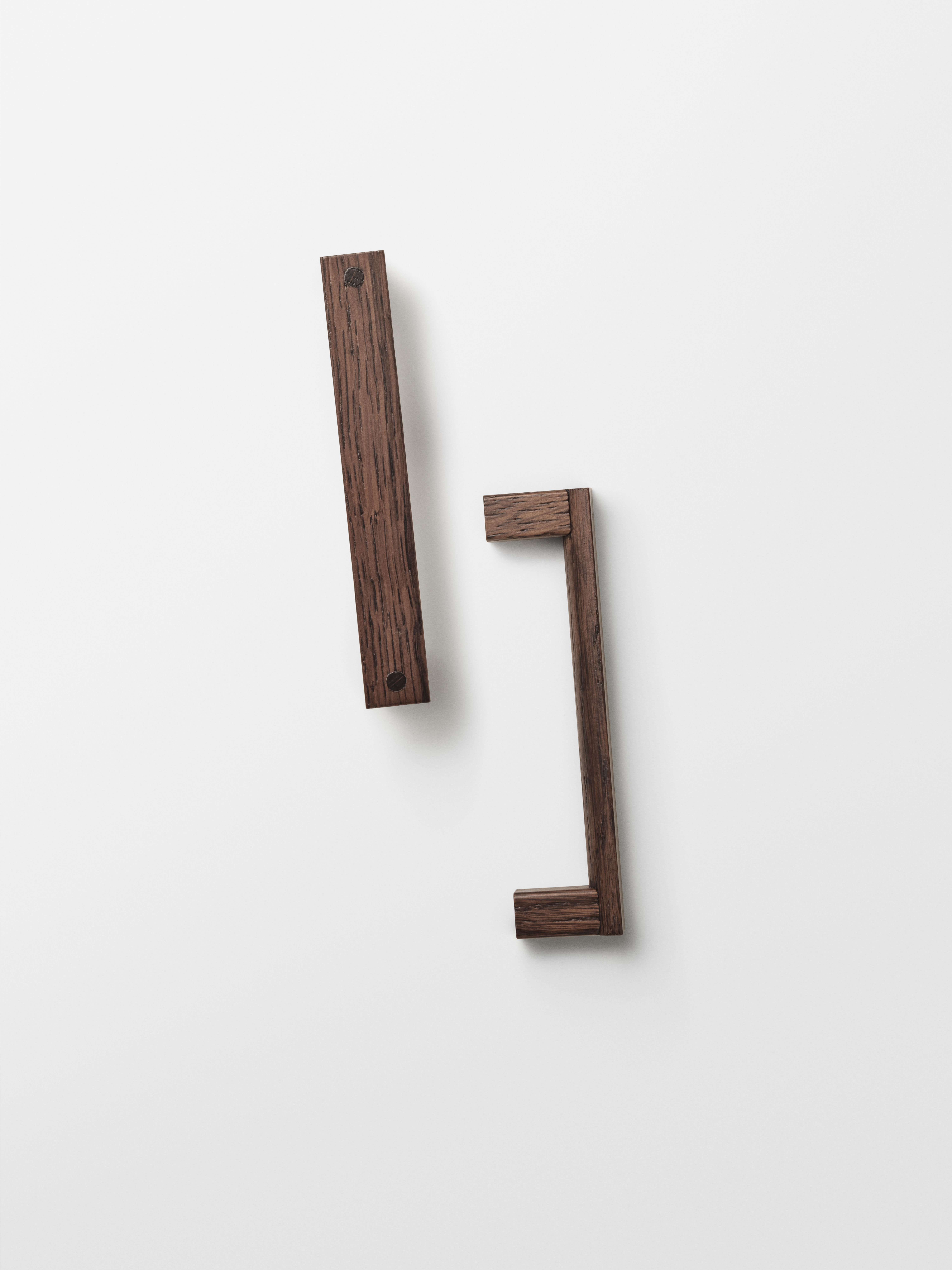Available in either natural or dark stained oak, both handles are made from solid European oak and have an integrated dowel made of dark black stained oak. The wooden handles are protected by a matte clear PU lacquer, making them easy to clean and maintain.