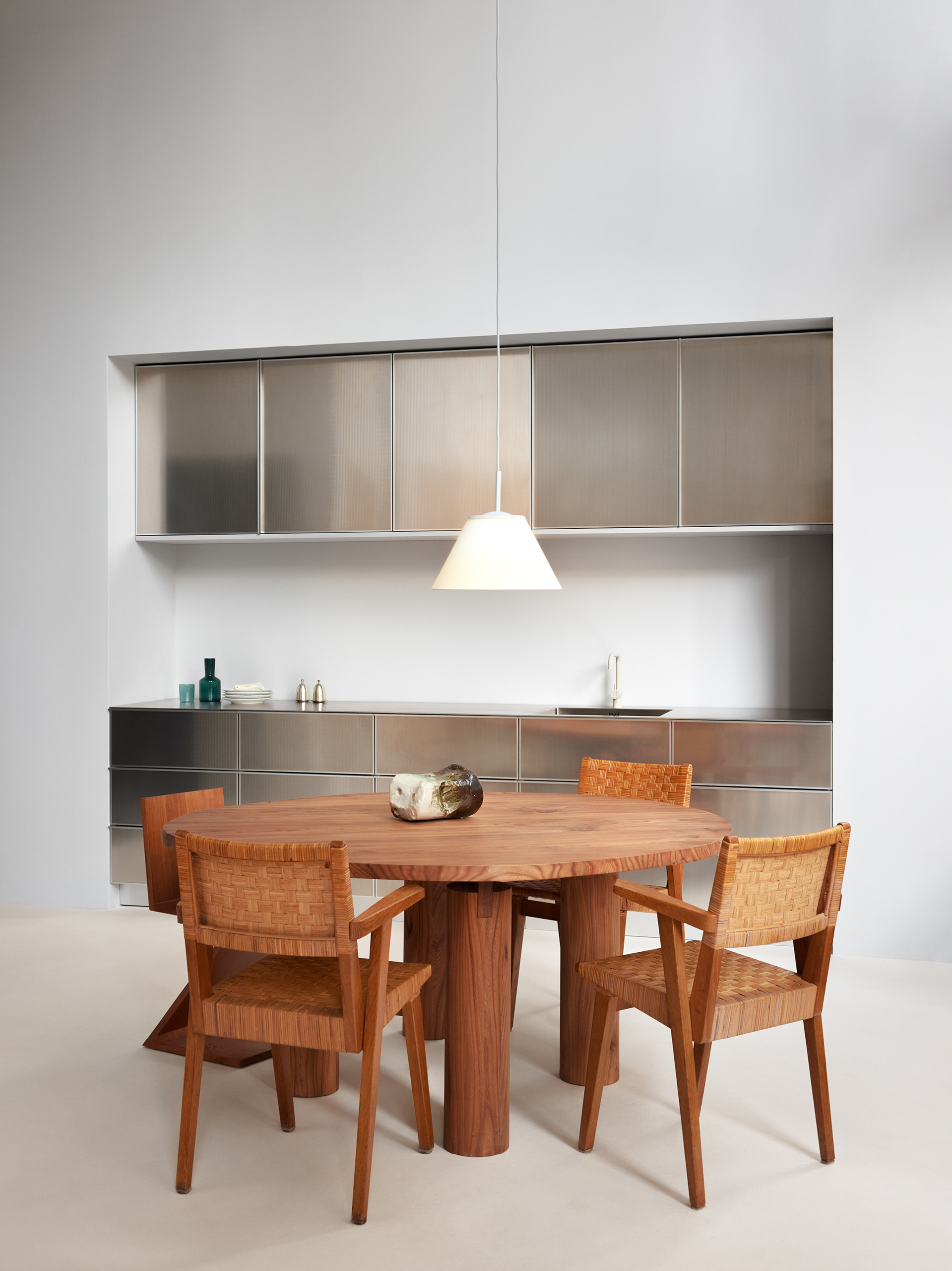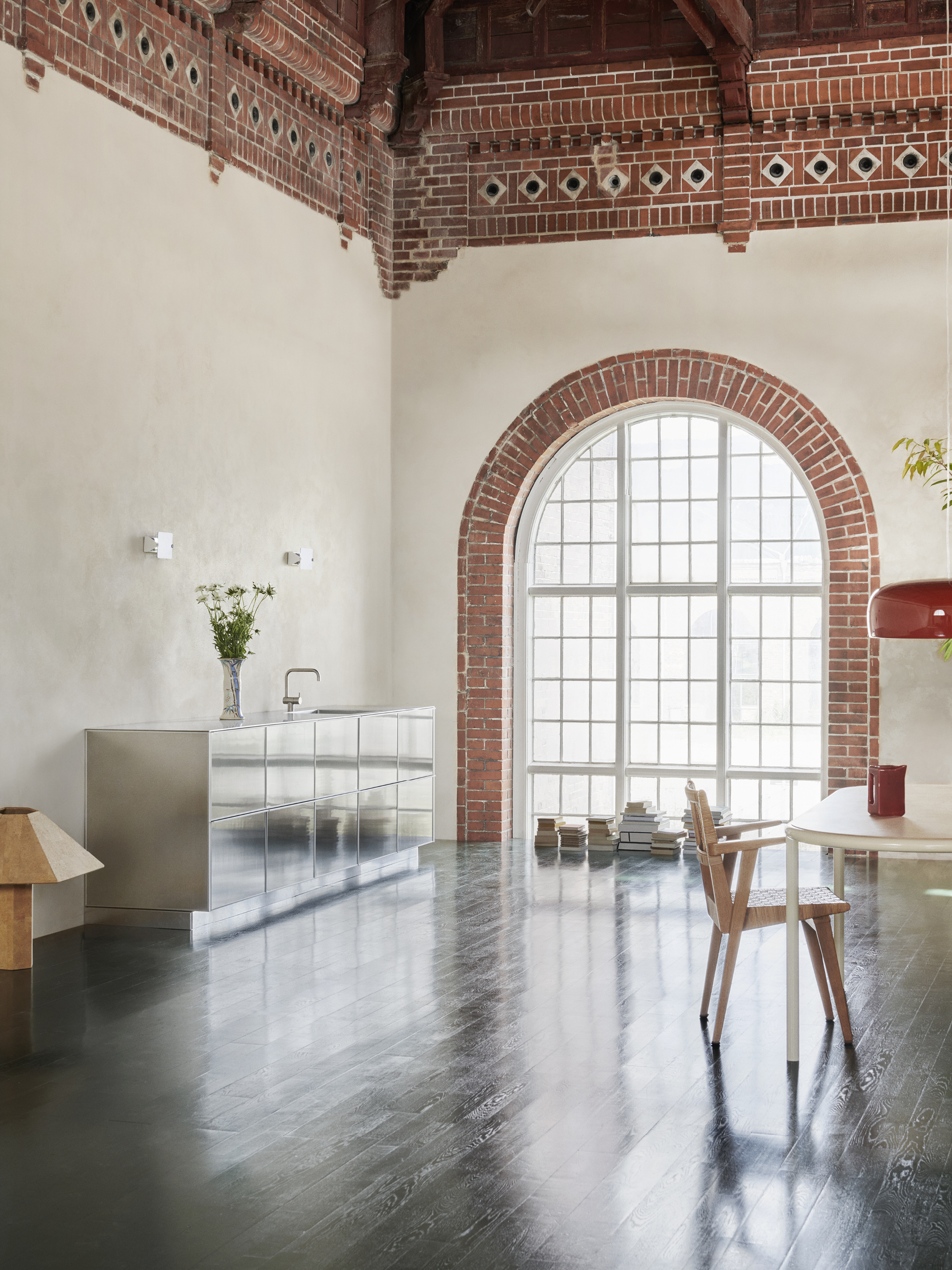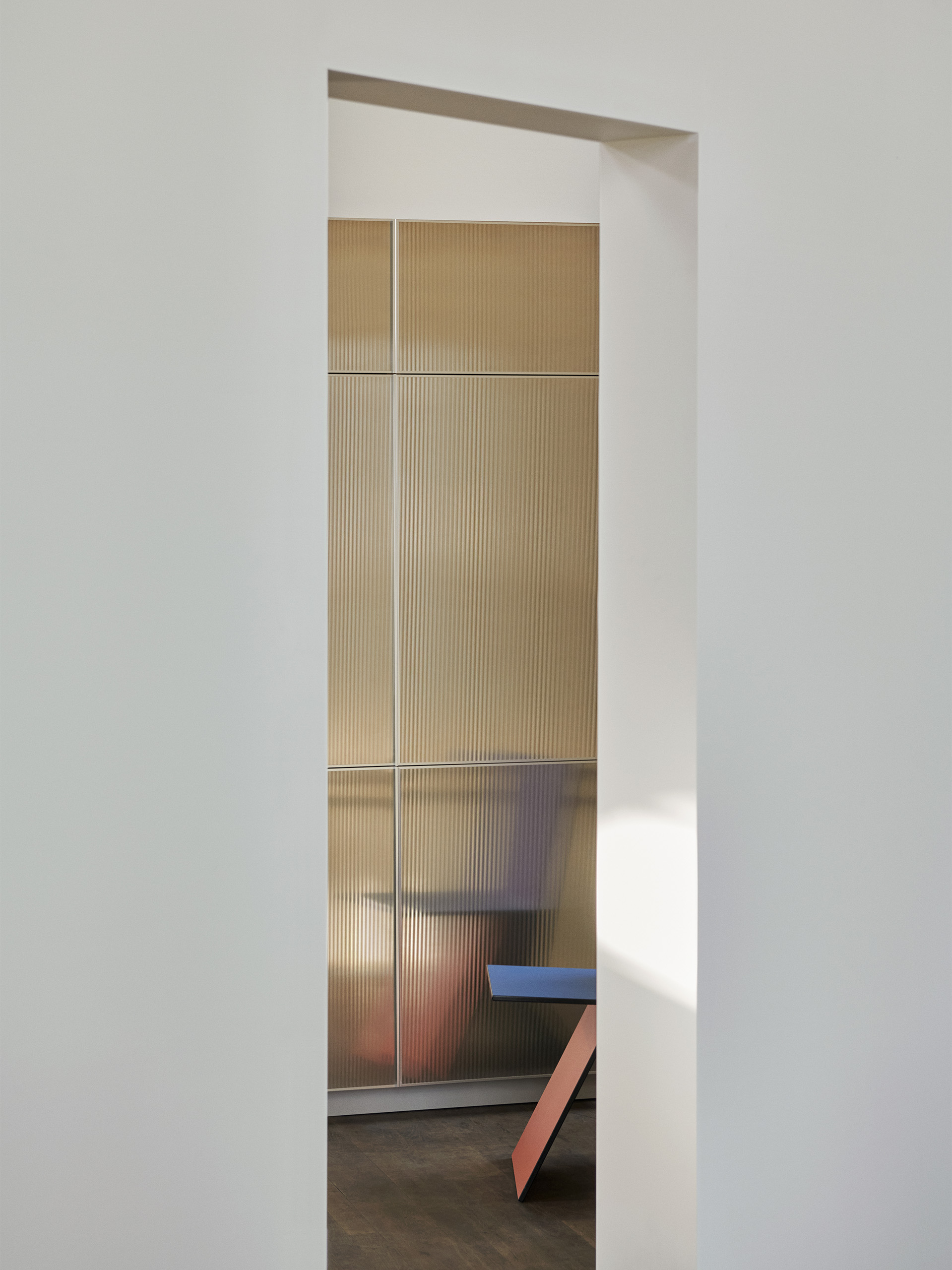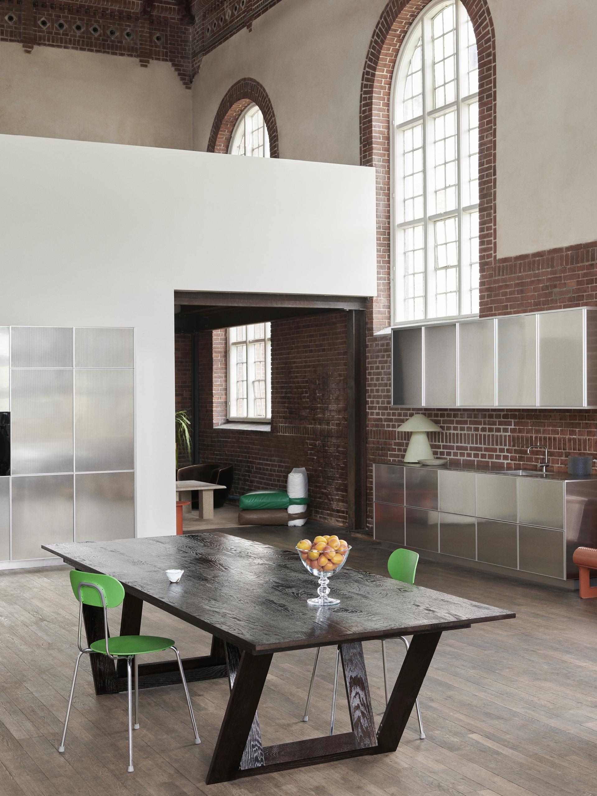 REFLECT explores the relationship between surface, structure, and light. Vertical ridges in brushed metal catch and shift with the daylight, creating quiet movement and evolving reflections. The result is a design that feels both grounded and dynamic—an expressive backdrop to everyday life.