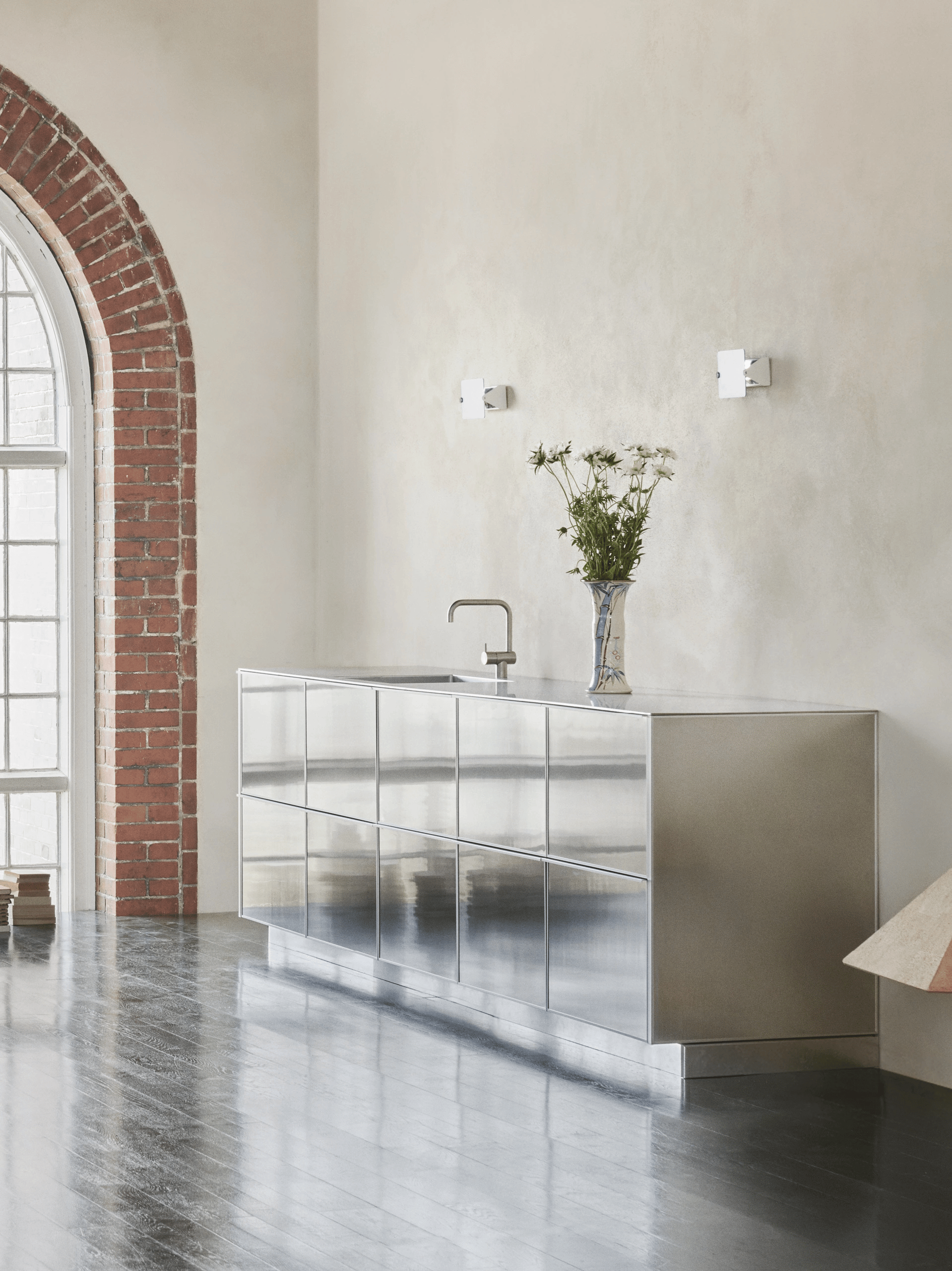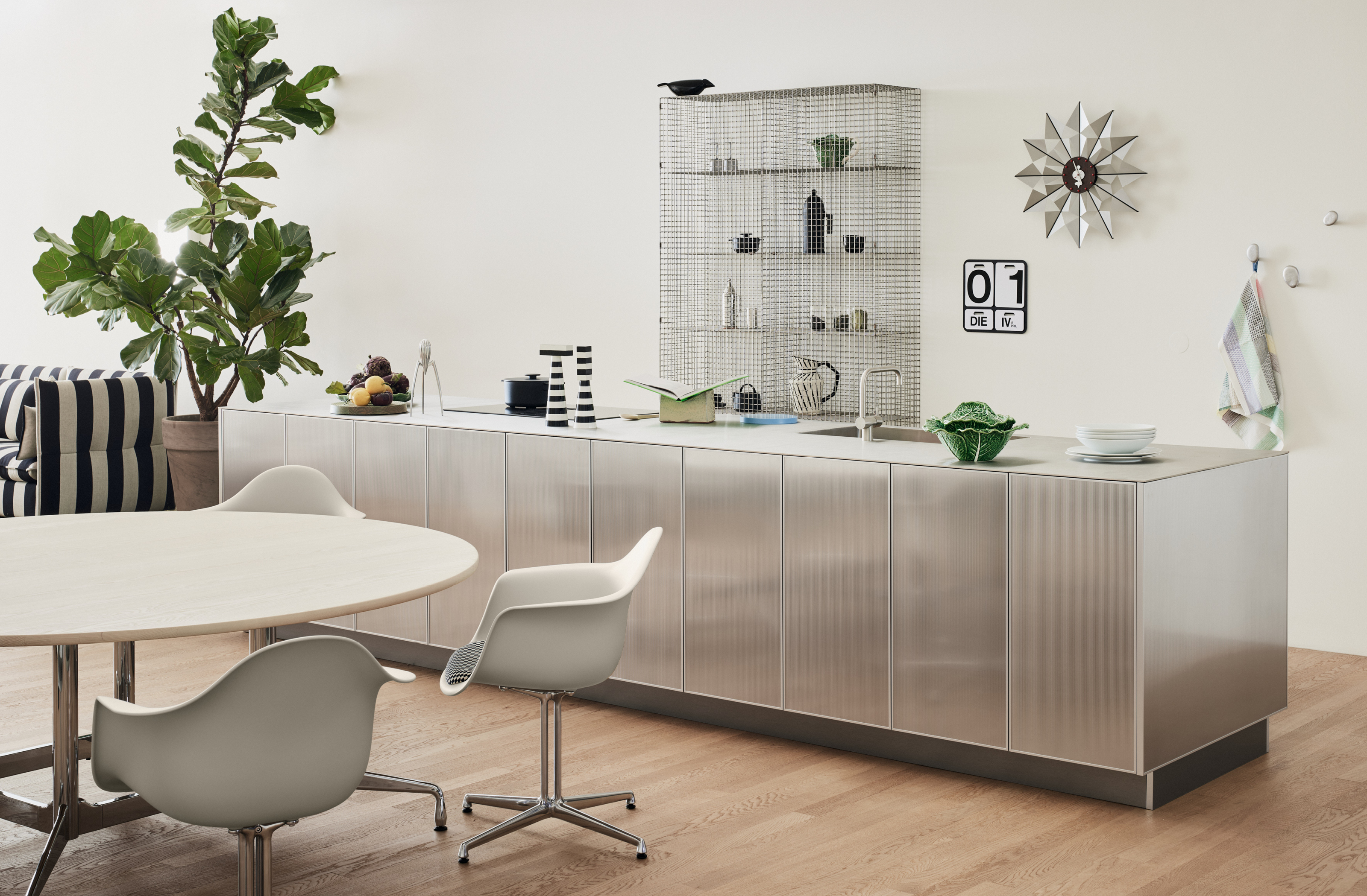 Dans la VitraHaus, la cuisine REFLECT de Reform participe à une installation évolutive qui interroge l'art de vivre contemporain. L'espace efface volontairement les frontières entre fonction et forme pour proposer une vision réfléchie du foyer moderne, où mobilier, objets et architecture entrent en dialogue. Au centre de cet ensemble, REFLECT exprime le talent de Jean Nouvel : faire jouer la lumière avec les matériaux. Les surfaces en acier inoxydable reflètent l'environnement dans un jeu visuel toujours renouvelé.